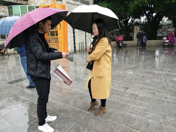 6日下午,由17级新生辅导员汪圳带领的宣传小分队进入了福州金山中学,由于汪导小分队的宣传人员较多,我们占据人和优势。