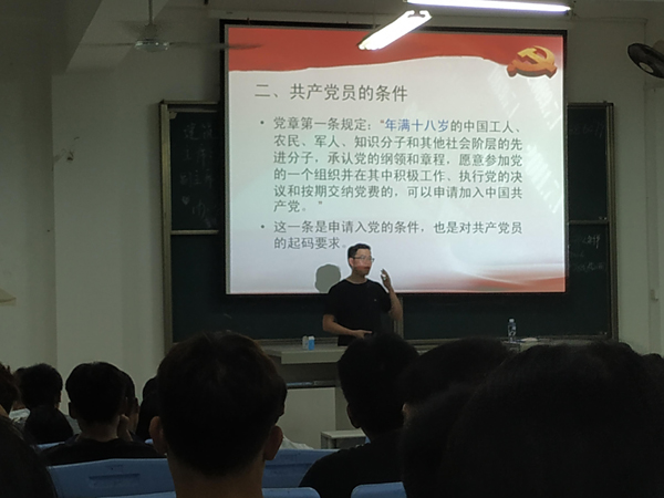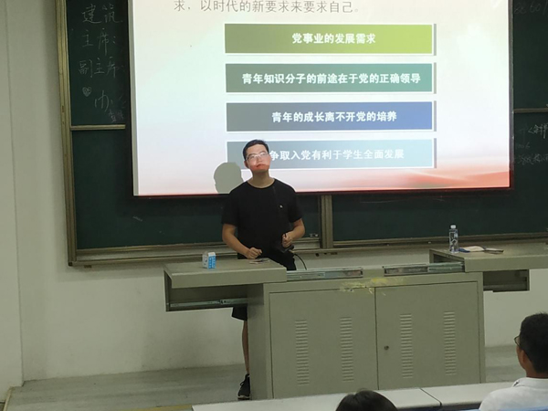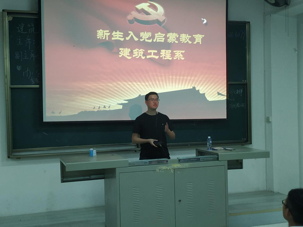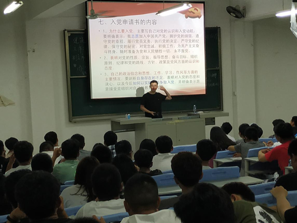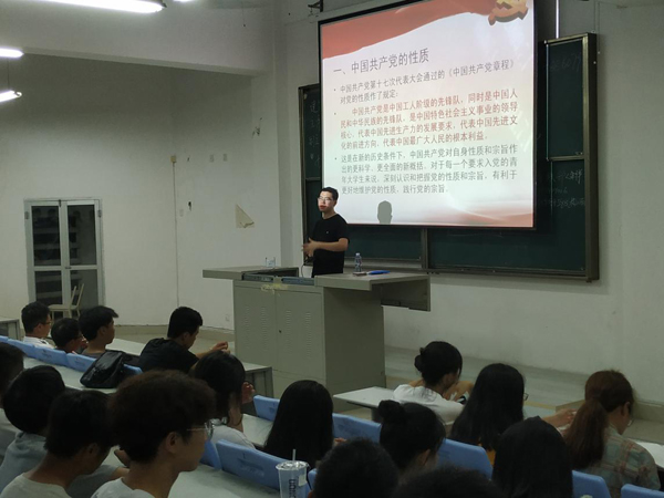 为进一步引导广大新生认识入党动机,了解入党流程,建工系于9月17日晚19时,在B314教室举行了2018级新生入党启蒙教育大会,由公司党政办秘书、机关党支部秘书郑凯源老师主讲,2018级全体新生参加了此次活动。